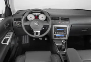 Em termos de acabamento, o Golf 1.6L Sportline 2010 possui um interior que reflete a qualidade típica da Volkswagen. O painel de instrumentos é bem organizado, com materiais que transmitem robustez e durabilidade. Os bancos têm bom apoio e o volante tem um design esportivo, com a base plana, o que reforça a proposta do modelo Sportline. O modelo é simples, mas com um toque de sofisticação que o torna muito agradável visualmente, tanto por dentro quanto por fora.